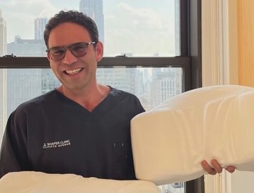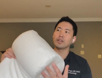 Quando você dorme a noite toda de bruços, está esmagando o rosto e criando essas rugas do sono, causando rugas estáticas que não podem ser corrigidas com preenchimentos ou outros tratamentos. Portanto, é muito importante usar um travesseiro de beleza e dar a si mesmo a melhor oportunidade de ter uma pele macia.