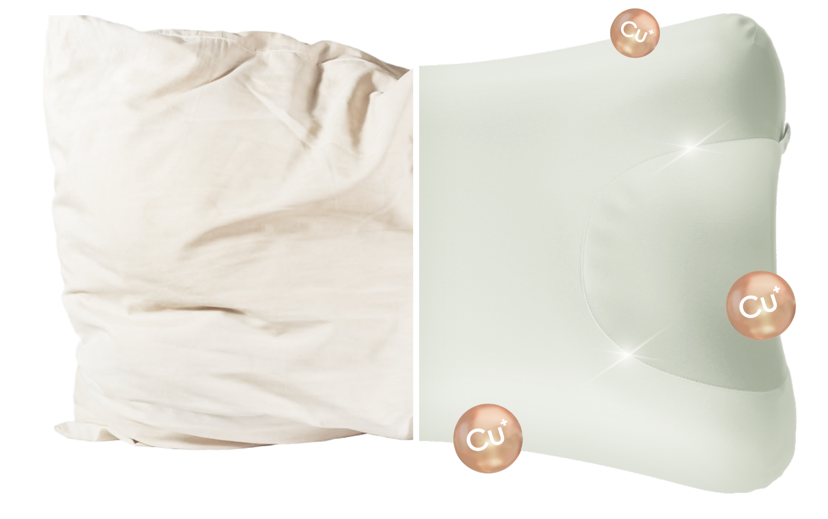 O cobre contido na fronha elimina 99,9% das bactérias que causam acne, dermatite atópica, irritações e coceira.