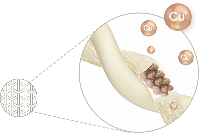 O contato entre a pele e os fios de cobre estimula a produção de colágeno, a principal proteína responsável pela suavidade e elasticidade da pele.